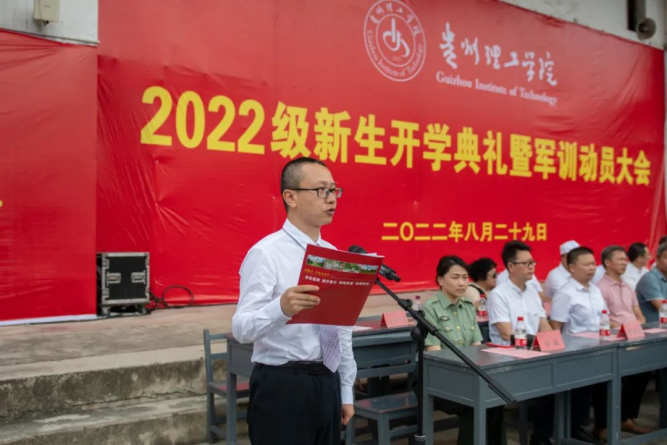 2022年8月29日,贵州理工学院2022级新生开学典礼暨军训动员大会在蔡家关校区举行,校领导潘良明、高勇、胡兴灿、林长松、张开智,校党委委员左柏州、李朋出席大会,2951名“萌新”聆听了大学第一课。