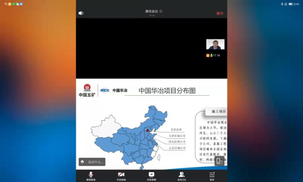 本网讯(黄艳丽) 10月21日下午,我院通过线上会议方式举办中国华冶科工集团有限公司(以下简称“MCC”)专场招聘会,来自我院采矿、安全专业以及兄弟学院地质、机电等专业的近60名毕业年级同学参加了此次招聘会。