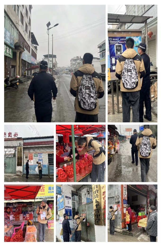 1月25日—2月1日,团队一行来到太平营街道,与当地派出所一起进行了烟花爆竹安全宣传,通过张贴宣传海报、发放宣传手册、现场宣讲等方式进行宣传,让中国足球彩票的民众了解到烟花爆竹安全知识。