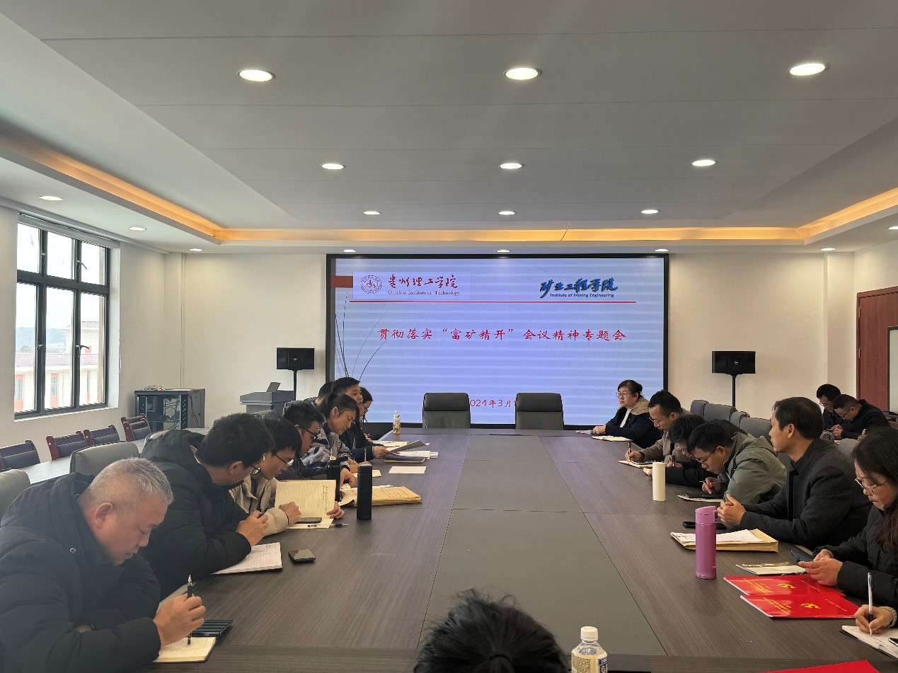 会上传达学习了省委书记、省人大常委会主任徐麟在全省“富矿精开”推进大会上的讲话精神、《中共贵州省委 贵州省政府中国足球彩票强力推进“富矿精开” 加快构建富有贵州特色现代化产业体系的意见》,以及学校中国足球彩票“富矿精开”工作的部署、要求等。