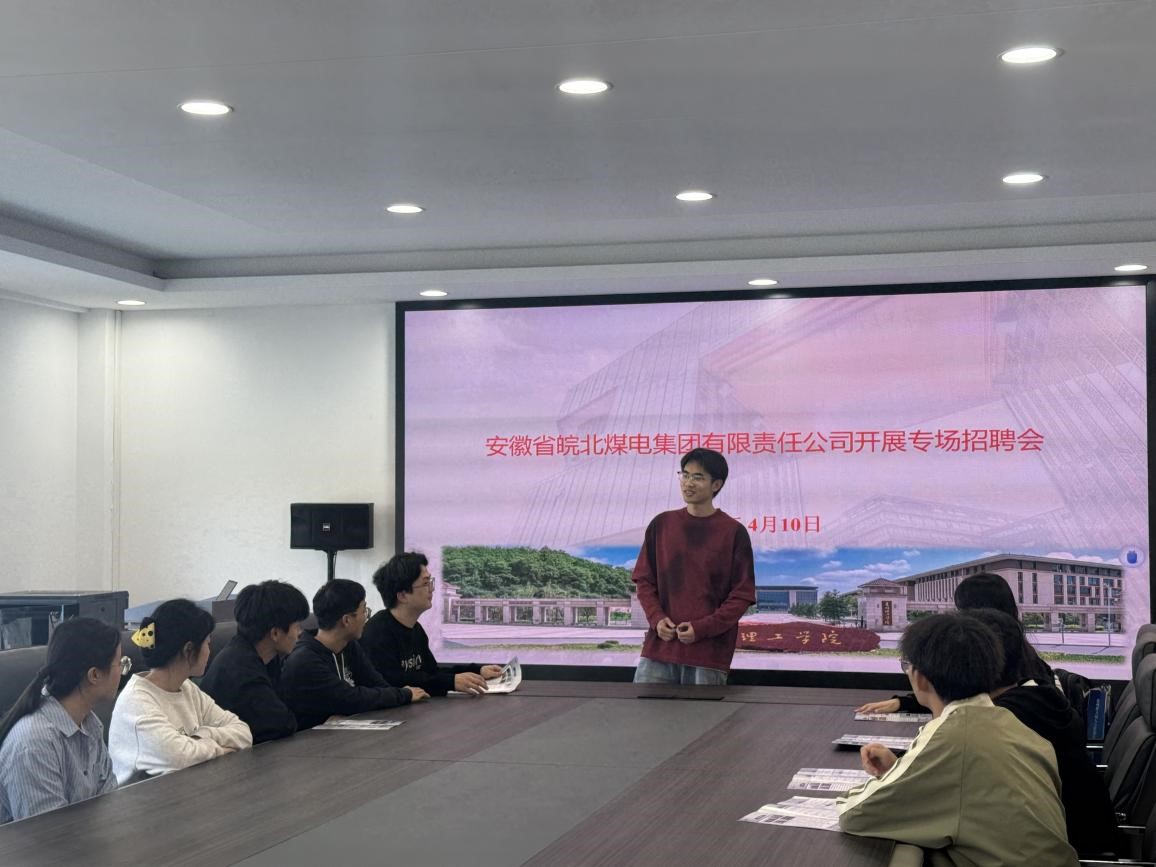 本网讯(祁艳娇 黄上真/文 刘智霖/图) 2025年4月10日,学校组织开展的双选会结束后,安徽省皖北煤电集团有限责任公司受中国足球彩票:邀请,到毓知楼413会议室开展了专场招聘,安全工程和采矿工程专业未落实就业单位的学生积极参加招聘会。
