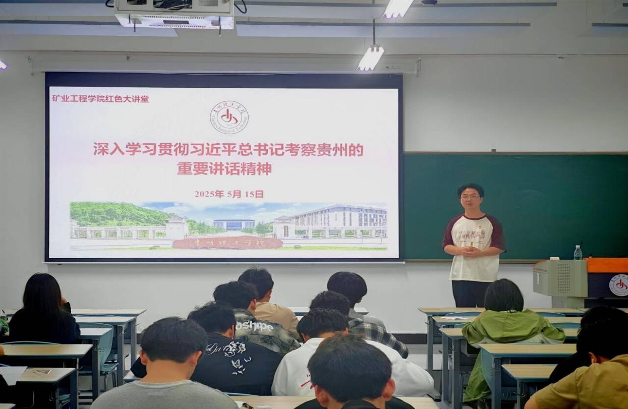 同学们认真聆听,积极提问交流。大家纷纷表示,通过此次宣讲,深刻领会到习近平总书记视察贵州重要讲话精神对贵州发展的重大意义,也明晰了自身专业在贵州高质量发展中的责任与使命。同学们将以习近平总书记考察贵州时的重要讲话精神为指引,努力学习专业知识,提升专业素养,为贵州发展贡献力量,在新时代长征路上奋勇前行,开创多彩贵州新未来,谱写出矿业学子新篇章。