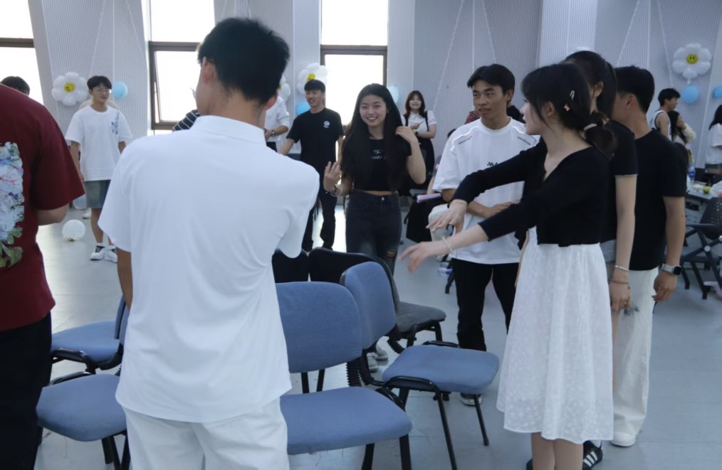 师生互动游戏环节高潮迭起,既有团队竞赛“你画我猜”、“同心击鼓”、又有个人挑战“摸鼻子比赛”、“抢凳子大作战”等趣味游戏,在默契配合和欢声笑语中展现学子的青春活力。