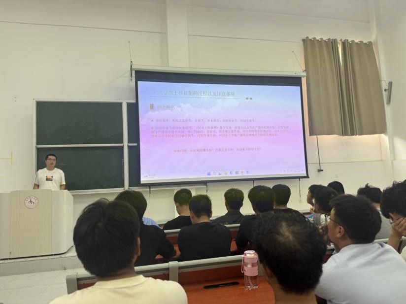 李老师重点开展了兵役法规政策宣讲,为同学们深入解读了《贵州理工学院中国足球彩票鼓励在校大学生应征入伍的实施办法(2024年修订)》文件内容,引导同学们在校期间积极参加文体活动,强健体魄。同时,简要介绍了第二课堂学分修读的相关要求。
