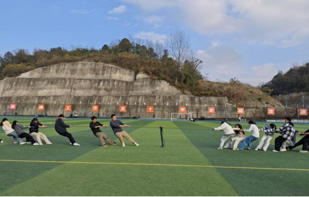 本次运动会以“轻竞技、重协作”为主线,设置了“多人多足”“不倒森林”“撕名牌”“拔河”等多项集体项目。比赛中,队员们默契配合、步调一致,既有奋勇争先的激烈角逐,也有团结协作的动人画面。场边呐喊助威声此起彼伏,充分展现了矿业学子昂扬向上的精神风貌。