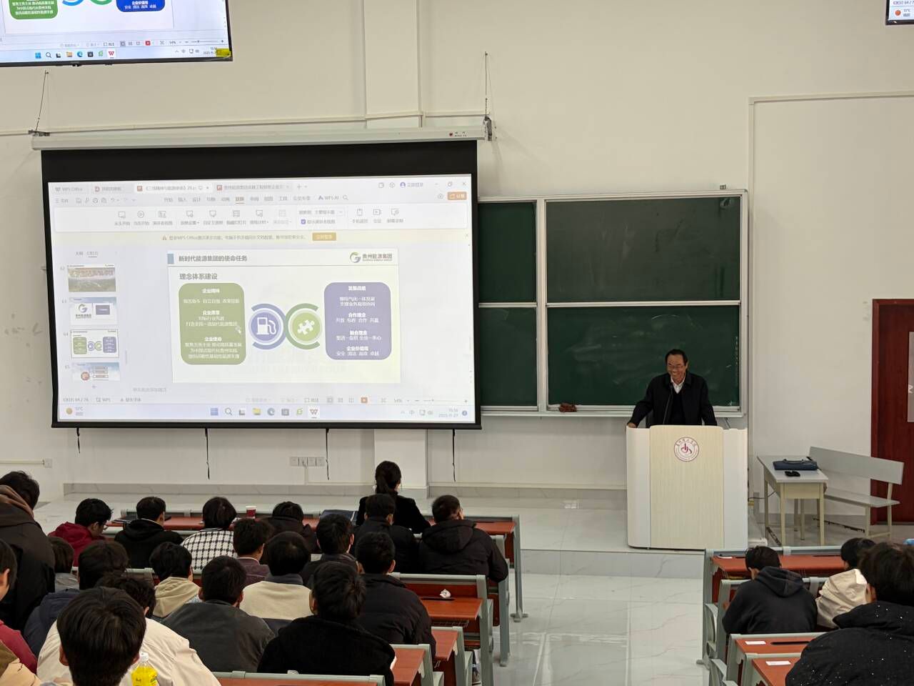 本网讯(文/刘印 图/蔡廉懿)11月27日,贵州能源集团“卓越工程师班”企业文化特色课程在致知楼207教室开讲。贵州能源集团外部董事张道林担任主讲人,为同学们呈现了一堂思想深刻、内容丰富的文化盛宴。