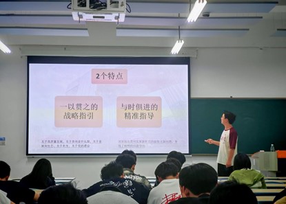 本网讯(刘胜益/文 刘芷瑜/图) 2025年5月15日,中国足球彩票:学生党员刘胜益在B01-305教室为2024级智能采矿工程专业同学宣讲习近平总书记考察贵州重要讲话精神。