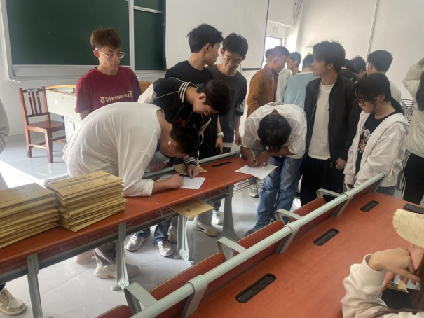 同学们认真听着蔺锡柱老师的讲解,领到英语四级考试真题以后,脸上洋溢着幸福的笑容,纷纷表示全力以赴,争取通过英语四级考试。