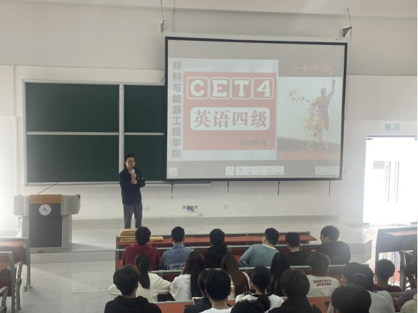 2024年6月15日将迎来全国大学生英语四级考试,为提高我院学生英语四级考试的积极性和通过率,2024年4月26日,材料与能源工程学院在C03-118阶梯教室开展“英语四级真题赠送及考试注意事项培训活动”。