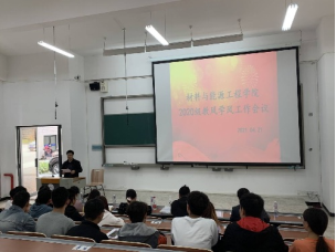本网讯(材料与能源工程学院 文字/邓珏 图片/黄武燕)2021年4月21日,材料与能源工程学院在贵安校区天工楼G2108教室召开2020级教风学风工作会议。会议由学院党总支副书记夏雍主持,副院长周登凤,教务科负责人胡素丽,2020级辅导员邓珏、2020级班主任,各班班长、团支书、学习委员及学生会代表参加会议。