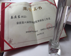 本网讯(材料与冶金工程学院 文字/李杨 图片/李杨) 为表彰近年来涌现出的为贵州省科学技术发展作出基础贡献的科技工作者,并在全社会树立和弘扬尊重劳动、尊重知识、尊重人才、尊重创造的风尚,贵州省科学技术协会与贵州省人力资源和社会保障厅于2019年3月28日联合表彰了第八届贵州省优秀科技工作者,我院秦庆东教授获此殊荣。
