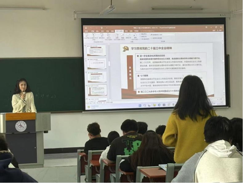 最后,韩青老师对全会中提出的进一步深化改革的重大举措进行了深入解读,鼓励全体学生,要把学习党的二十届三中全会精神与日常学习生活结合起来,坚定不移听党话、跟党走,厚植家国情怀,坚定理想信念,练就过硬本领,以实际行动为中国式现代化贡献青春力量。