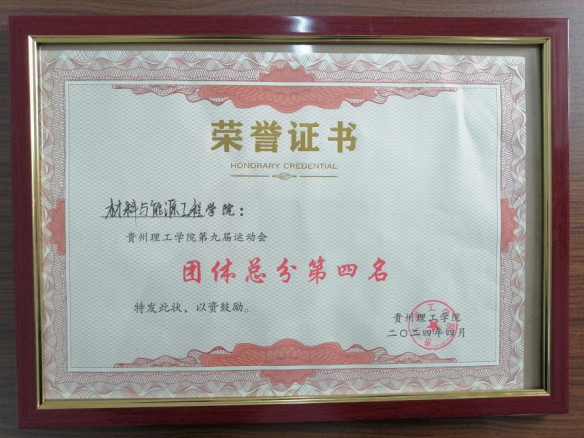2024年4月12日至14日,贵州理工学院举办第九届运动会。我院学子积极应战,努力拼搏,最终取得了总分第四的好成绩,实现了运动成绩和精神文明双丰收。
