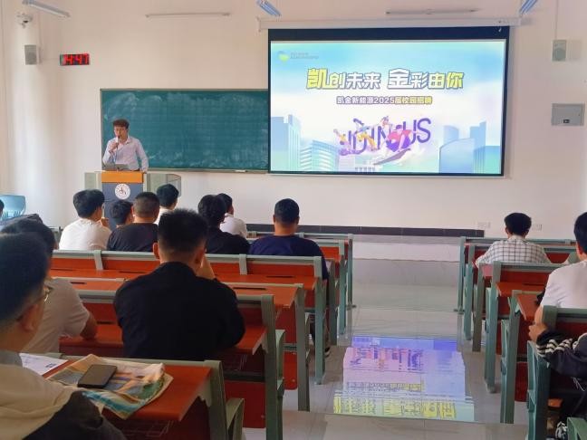 2025年4月17日下午,贵州凯金新能源科技有限公司人力资源部负责人管骥先生在敏学楼103教室为我院2025届毕业生进行企业招聘宣讲,我院学生积极参加。