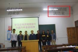 班长孙启辉等多位同学以演讲的方式对党的十八届六中全会精神进行了诠释,重点介绍了党的十八届六中全会召开背景、主要内容以及作为一名共青团员如何贯彻实施。演讲结束后,学院党总支副书记潘健林同志进行了点评。他说这次以十八届六中全会精神为主题的团日活动开展得很成功,说明班主任高度重视,团支部组织得力,大家准备充分。他强调作为我们党的后备军的每个团员要以这次学习为契机,认真领会六中全会的精神实质,坚定理想信念,用中国特色社会主义理论体系武装头脑,不断坚定对马克思主义的信仰,对中国特色社会主义的信念,对改革开放和现代化建设的信心。他希望在座的每个同学勤奋学习,提高修养,努力把自己培养成为人格健全,品德高尚,全面发展,学有所长的人。最后班主任龙琼老师作了总结发言。本次团日活动在和谐愉快的气氛中结束。