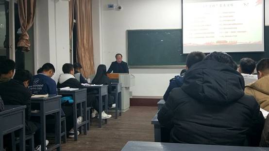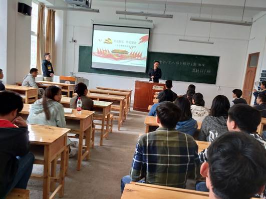 在党员教师班级宣讲上,学院领导、党员同志利用午休或晚自习时间到学院所有班级进行十九大精神宣讲,把学习贯彻党的十九大精神和深入推进“两学一做”学习教育常态化制度化结合起来,强化知行合一,以十九大精神统一思想、武装头脑、指导实践、推动工作。