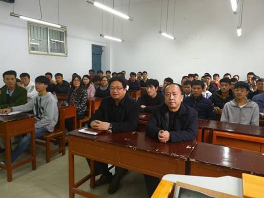 2017年11月23日,党总支副书记潘健林来到能器174班进行宣讲,他鼓励同学们要做不忘初心有理想、脚踏实地有本领、勇立潮头有担当的“三有”新青年。
