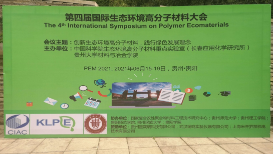 本网讯(材料与能源工程学院 伍剑明/文字)由中国科学院生态环境高分子材料重点实验室、贵州大学主办,贵州理工学院、贵州师范大学等联合协办的第四届国际生态环境高分子材料大会(PEM2021)于2021年6月15-19日在贵州省贵阳市举办。会议主题集中于可降解高分子材料、吸附与分离高分子材料、节能与环境友好高分子材料、环境高分子材料的加工技术、生物医用高分子材料、药物和基因控释系统等6个方面。本届会议集中报道了国际生态环境高分子材料领域的最新研究成果、发展趋势和热点、难点科学问题,研讨生态环境高分子材料领域的最新学术思想和学术进展。我院相关专业方向的老师参加了本次学术会议,其中罗大军博士作了题为《聚丙烯基中空纤维膜的亲水改性、结构设计和应用研究》学术报告,刘珊博士的研究成果以《麻杆芯活性炭的孔结构和吸附性研究》为主题进行了墙报展示。