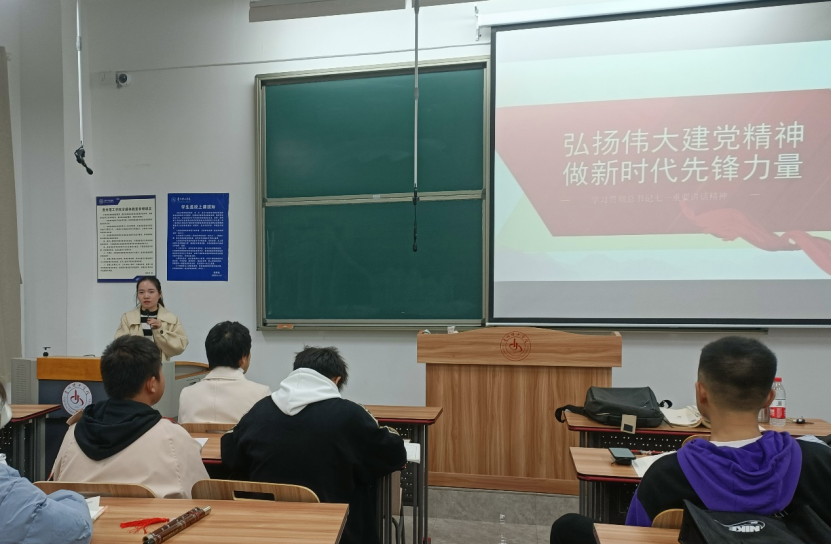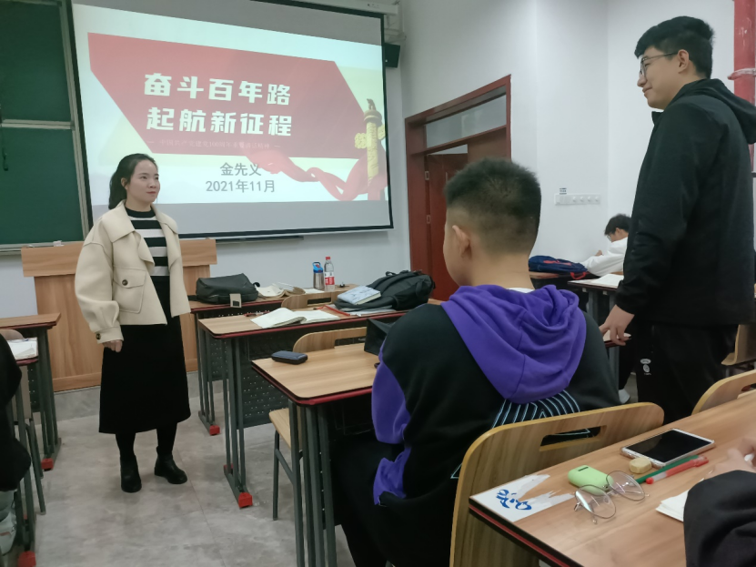 讲座中,辅导员金先义老师带领同学们回顾了党的百年光辉历程,表明“坚持真理、践行初心、担当使命、不怕牺牲、英勇斗争、对党忠诚、不负人民”是党永葆青春活力的秘诀。