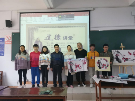 讲座过程中,夏老师首先介绍本次讲座的内容与意义,接着就带着学生们一起了解祖国的灿烂文化及国画四君子——梅、兰、竹、菊,一起走进国画梅花与欣赏梅花诗句。此外,还为同学们展示了中国画梅名家的优秀作品,同时,夏老师在现场亲自展现国画梅花画法,没多久,一幅精彩的梅花作品就浮现在同学眼前。最后,夏老师为此次讲座做总结,希望大家如梅花一般,顽强拼搏、自强不息。
