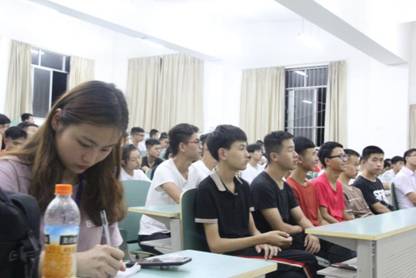 秦庆东副院长简要介绍三个专业情况,他举了很多例子,希望还没有学习专业知识的2018级新生能够更好的了解本专业,他期望同学们能学会坚持、学会规划、学会快乐的成长。