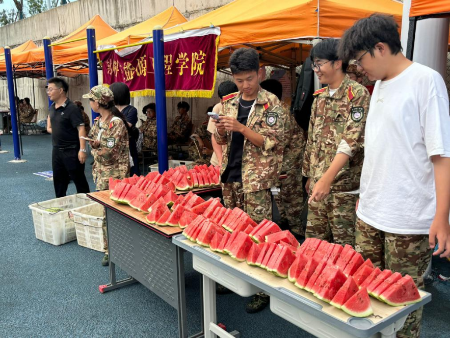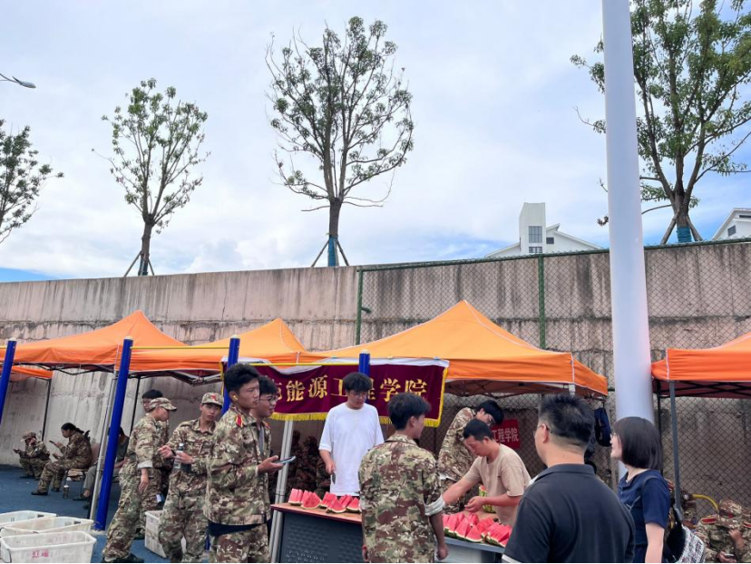 最后,给参训同学分发了西瓜,带给了他们烈日下的阵阵凉爽。同学们纷纷表示,学院的暖心关怀让他们感受到了学院大家庭的温馨与团结,在今后的训练中他们定将以更高标准要求自己,以更加饱满的精神面貌和顽强的意志完成接下来的训练,展现出青年学子的飒爽英姿。