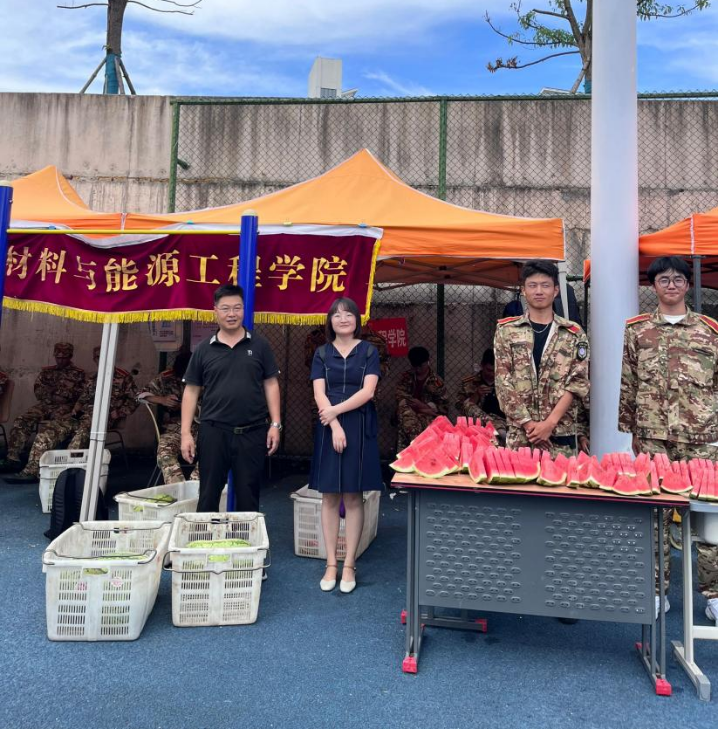 (图/杨鑫、侯钰锋 文/邓珏)2024年9月11日下午,材料与能源工程学院党总支副书记夏雍、2024级辅导员邓珏一同前往训练场地,亲切慰问全体参与军训的2024级材料学院新生。