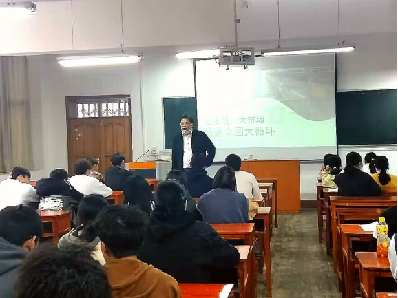 苏向东书记以“建设统一大市场,畅通全国大循环”为题,从我国市场经济的背景及发展优势为切入点,对我国建立统一大市场面临的挑战及发展战略围绕“不断凝聚的建设共识”“事关长远的战略所需”“由大到强的清晰路径”三个方面进行了深刻阐释,切实帮助学生全面、准确、深刻认识发展社会主义市场经济、建设统一大市场以及畅通全国大循环的丰富内涵及重大意义。