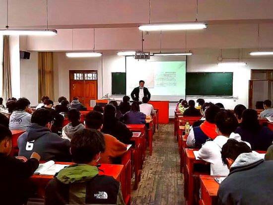 2022年11月16日下午,贵州理工学院党委书记苏向东在蔡家关校区给材料与能源工程学院材料223班、224班学生讲授形势与政策课。