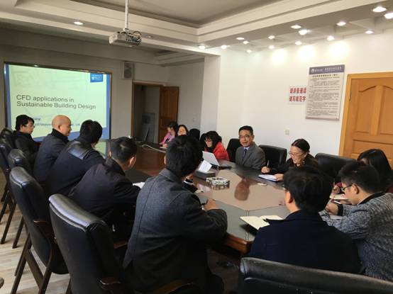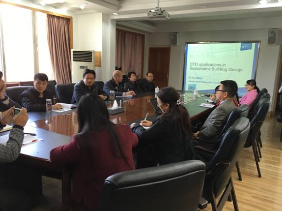 首先,苏向东教授介绍了汪帆博士的研究经历和研究成果。随后汪帆博士结合生活中的例子,深入浅出地阐述了了什么是可持续性建筑;利用生动的流体模型,严谨风趣地讲解了计算流体力学在可持续性建筑设计中的应用。接着,与会的老师们对汪帆博士生动的讲解进行了广泛讨论和积极提问。