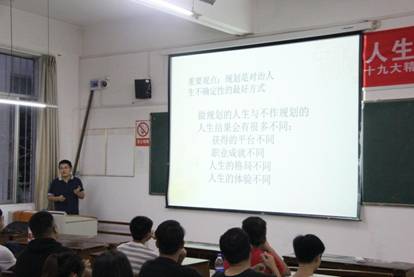 王老师从三个方面进行精彩的阐述:人生规划的重要性、职业生涯规划原则与如何撰写职业生涯规划书。他讲到,青年时代的时间效率要想发挥得高,就要认真梳理目标,准备方案,严格执行。由生活中的点滴可看出一个人的成长,立鸿鹄之志就要有一颗矢志不渝的心,你所付出的每一分努力你未来的投资。