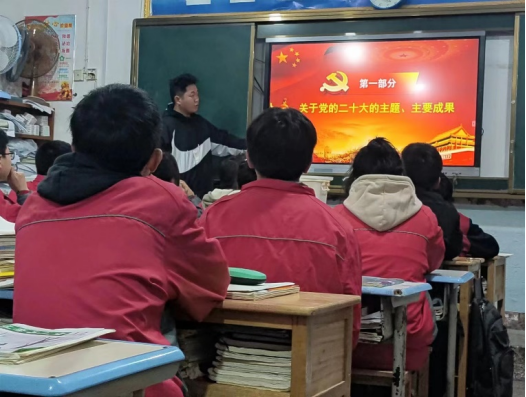 为深入学习贯彻习近平新时代中国特色社会主义思想,宣传贯彻落实党的二十大精神,2023年2月7日,贵州理工学院材料与能源工程学院2021级学生吴仕琳同学走进播州区鸭溪中学高二(1)班,给全体同学们带来了一场以“学习贯彻党的二十大精神”为主题的宣讲。