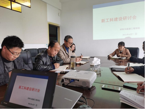 (本网讯 材料与能源工程学院 胡素丽/文 张纯/图)2021年4月7日,材料与能源工程学院在综合楼802会议室召开了新工科建设专题会议,会议由院副院长秦庆东主持,院领导潘健林、夏雍、周登凤,学院教授委员会成员、各专业负责人、教研室主任、学生科负责人、教学科研科负责人参加了会议。