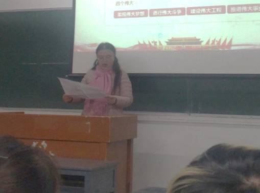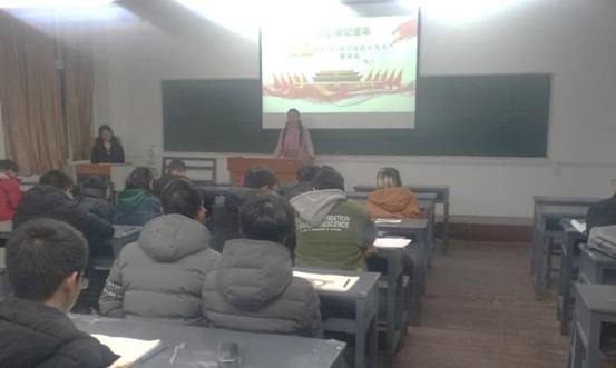 最后,杨江老师总结伍玉娇院长向我们传递的十九大重要精神,并对本班学生给予最好的祝愿,希望我们秉承宗旨,不忘初心、牢记使命。