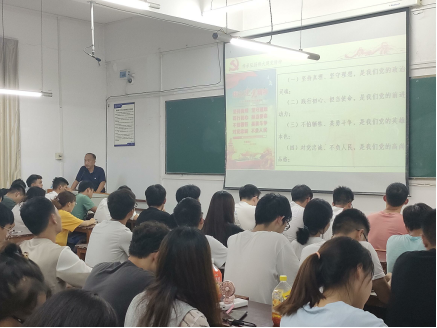 2021年9月28日19:30在3教113D教室,学院党总支书记潘健林同志以“传承弘扬伟大的建党精神”为主题,为材料学院156名入党积极分子进行宣讲,本次宣讲由材料学院团总支副书记杨澳主持。
