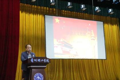 潘健林副书记从十八大以来我国取得的十个方面的历史性成就入手,结合实际、深入浅出地讲解了习近平新时代中国特色社会主义思想产生的历史背景,进入新时代的主要依据,历史使命,指出习近平新时代中国特色社会主义思想是一个开放的,发展的科学思想理论体系,核心要义就是八个明确,十四个坚持。让同学们对习近平新时代中国特色社会主义思想有了一个系统的认识。“青年兴则国兴,青年强则国强”,他希望同学们不忘初心、牢记使命,用习近平新时代中国特色社会主义思想武装头脑,指导实践,做新时代德才兼备的大学生。