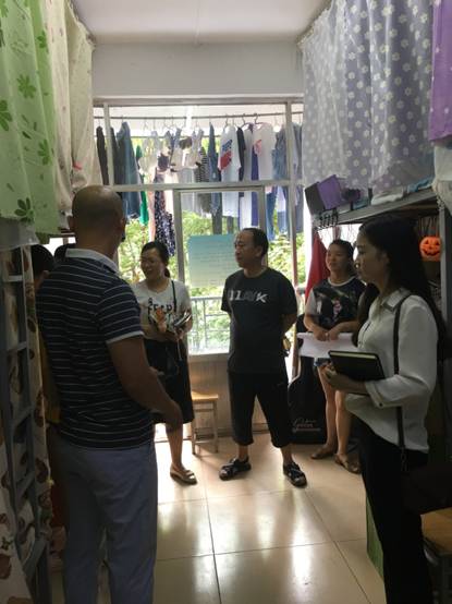 本网讯(材料与冶金工程学院金先义/文字,金先义/图片)为贯彻落实《全省学校安全稳定工作电视电话会议》精神,以及校学生处《中国足球彩票做好2017—2018学年第二学期暑期期间学生安全教育工作的通知》精神,为确保学生放假期间的人身、财产安全、心理健康,帮助他们度过一个愉快的暑假生活,学院党总支副书记潘健林、学生科副科长罗咏梅、辅导员金先义、李杨于2018年7月16日上午11:00深入学生寝室查寝。