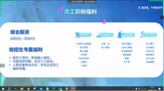 2024年3月19日晚,宁德时代新能源科技股份有限公司人力资源部负责人杨晓青女士通过腾讯会议,为我院2024届毕业生进行企业招聘宣讲,我院学生积极参加。
