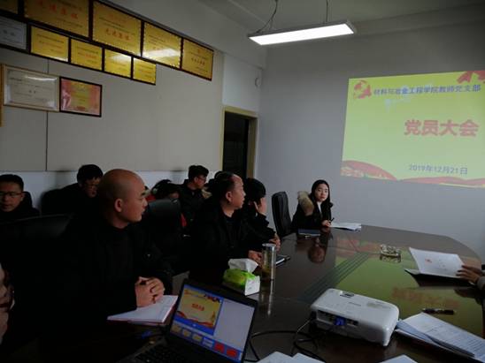 本网讯(材料与冶金工程学院 龙绍檑/文字 龙绍檑/图片)2019年12月21日,材料与冶金工程学院教师党支部在行政楼802会议室召开了中国足球彩票讨论孙同椿等6名预备党员转为中共正式党员,中国足球彩票接收易利艳等10名同志为中共预备党员的支部大会。支部全体师生党员参会,会议由党支部书记李娟同志主持。