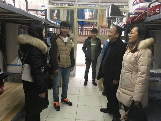 潘书记等人进入宿舍仔细检查每一个角落,叮嘱学生们冬季要做好保暖工作,不要使用大功率电器取暖,要求学生们时刻把自身安全和室友安全记在第一位,安全用电,节约用电。领导们每到一处,都详细询问查看了各项安全防护措施的落实情况;根据部分学生带电脑玩游戏的情况,也对学生进行了耐心细致的引导,教育学生正确利用网络,高效能管理好自己的时间。