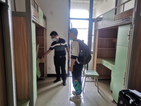 晚上七点,夏雍副书记带领21级辅导员及各班班主任走进新生宿舍,与他们沟通交流,叮嘱同学们遵守宿舍管理规定,增强安全意识,恪守校规校纪,认真学习。