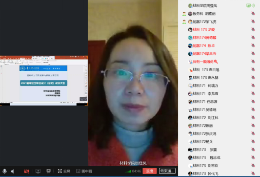 本网讯(材料与能源工程学院 胡素丽/文 胡素丽/图)毕业设计(论文)是学生毕业前的最后学习阶段,是培养大学生创新能力、实践能力的重要环节,为确保我院2021届毕业生毕业设计(论文)教学质量,顺利推进2021届本科毕业设计(论文)工作,材料与能源工程学院于12月28日晚上8点,在线上召开了2021届本科毕业设计(论文)动员会,会议由周登凤副院长主持。