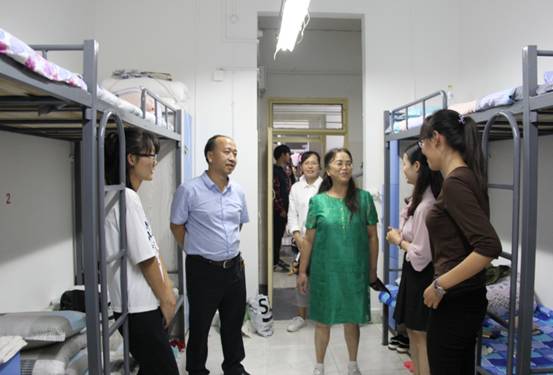 晚上20:00,在院长伍玉娇,副书记潘健林的带领下,学生科副科长罗咏梅、辅导员金先义及2017级班主任走进新生宿舍,看望2017级新生,了解新生们的住宿生活条件,并与他们进行亲切交流,对学院领导的到来,同学感到无比的喜悦与高兴。
