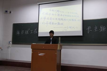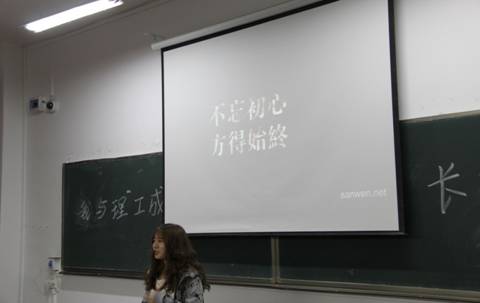 “每个人都应该成为自己命运的建筑师!”在主持人杨光银的带领下,班上几位同学分享了自己在求学路上的种种经历,他们有过困难、有过气馁也有过失落,即使他们一路走来并不是一帆风顺,但他们没有放弃,在咬紧牙关的坚持里,他们来到了大学,相信他们会一直努力在今后的生活中越走越好,也相信同学们在听了他们的故事之后会有所启发,在成长的路上需要努力争取,如果有一颗向上的心,那么一切都为时不晚。