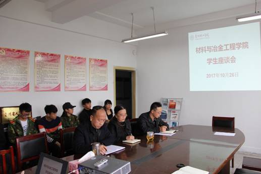 10月26日中午12:50,在材料与冶金工程学院802会议室召开了学生座谈会。院领导伍玉娇、潘健林、秦庆东出席会议,座谈会由秦庆东副院长主持。教研室主任、辅导员、学生科负责人、教学秘书、学生代表等25人参加会议。