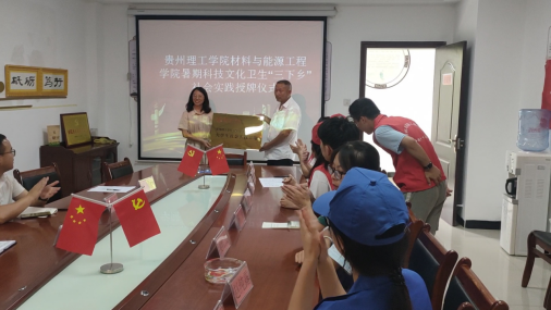 本网讯(材料与能源工程学院 文字\杨艳菲 图片\赵慧芳)2022年7月21日上午,贵州理工学院材料与能源工程学院社会实践活动授牌仪式在沙滩村举行。遵义市委农科院中药材研究所驻沙滩村第一书记杨秀伟,遵义市委农科院党委副书记王开强,遵义市卫计局驻沙滩村书记助理郑鸿浩,沙滩村委员会副主任姜明华,沙滩村委会委员黎桦元,贵州理工学院辅导员代海艳等出席本次授牌仪式等出席本次授牌仪式。
