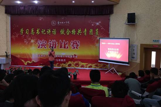 2017年4月17日14时,由校团委主办的“学习总书记讲话做合格共青团员”演讲比赛决赛在学校逸夫小报告厅举行。经过班级初赛,学院复赛角逐,黄烛丹同学代表材料与冶金工程学院参加本次决赛。