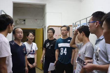晚上19:30,在副书记潘健林、副院长秦庆东的带领下,学生科副科长罗咏梅、辅导员蔺锡柱及各班班主任走进新生宿舍,看望2018级新生,了解新生们的住宿生活条件,并与他们进行亲切交流,叮嘱同学们时刻把自身安全和财产安全记放在第一位、安全用电。对学院领导和老师的到来,同学感到无比的喜悦与高兴。