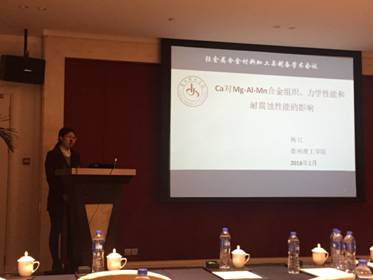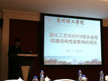 我院秦庆东副院长、杨江博士和朱阮利博士参加了本次会议,分别作了“Al-Mg2Si合金材料研究进展”、“Ca对AM50镁合金组织、力学性能以及耐蚀性能的影响”、“固化工艺对AZ91D镁合金硅烷膜结构性能的影响研究”专题报告;秦庆东教授应邀作为铝及铝合金加工与制备第一分会场的分会主席并主持了该分会场最后一阶段的报告。