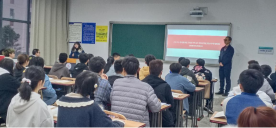 秦庆东与同学们首先学习了习近平总书记在贵州视察时重要讲话精神的五个重点内容。一是贵州的创新发展是构建新发展格局的必然选择。秦庆东着重讲解了创新是贵州社会发展的驱动力,勉励同学们要努力学好专业知识,增强创新本领。二是贵州一定要做好巩固拓展脱贫攻坚成果同乡村振兴有效衔接。秦庆东与同学们一道回顾了作为全国脱贫攻坚主战场的贵州的脱贫攻坚历程,取得的重大成绩,以及乡村振兴的重大意义,鼓励同学们毕业后按照总书记的要求积极投入到乡村振兴工作中来,为家乡的发展献计献策。三是要牢固树立生态优先、绿色发展的导向。“绿水青山就是金山银山”,秦庆东通过具体的实例表明绿水青山是贵州的宝贵财富,要按照总书记的要求把家乡的环境维护好,保护好,将专业知识用于绿色发展。第四要坚持以人民为中心的发展思想。以人民为中心体现了中国共产党人的初心和使命,是工人阶级政党本质规定的当代表达,秦庆东结合党史用事例让同学更加深入的我们党以人民为中心的发展思想。第五要深入学习党的创新理论,加强党史学习教育。最后,秦庆东结合党史的学习鼓励同学们要积极学习党的理论,学习党史,通过学习党史提高自身的专业能力和综合素质,提高班级的凝聚力,增强将来干事创业的能力。